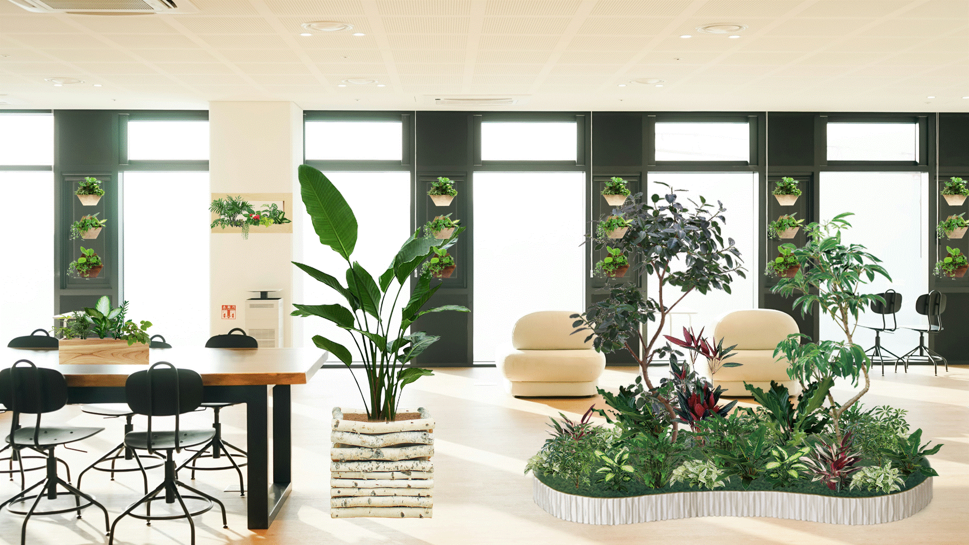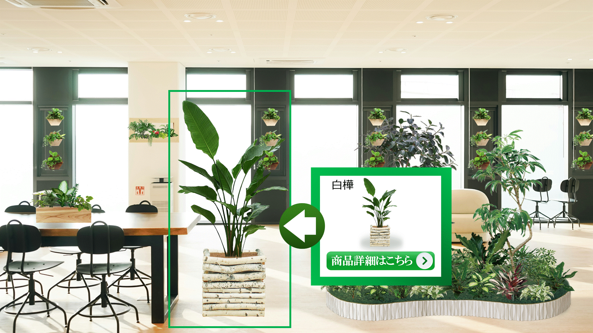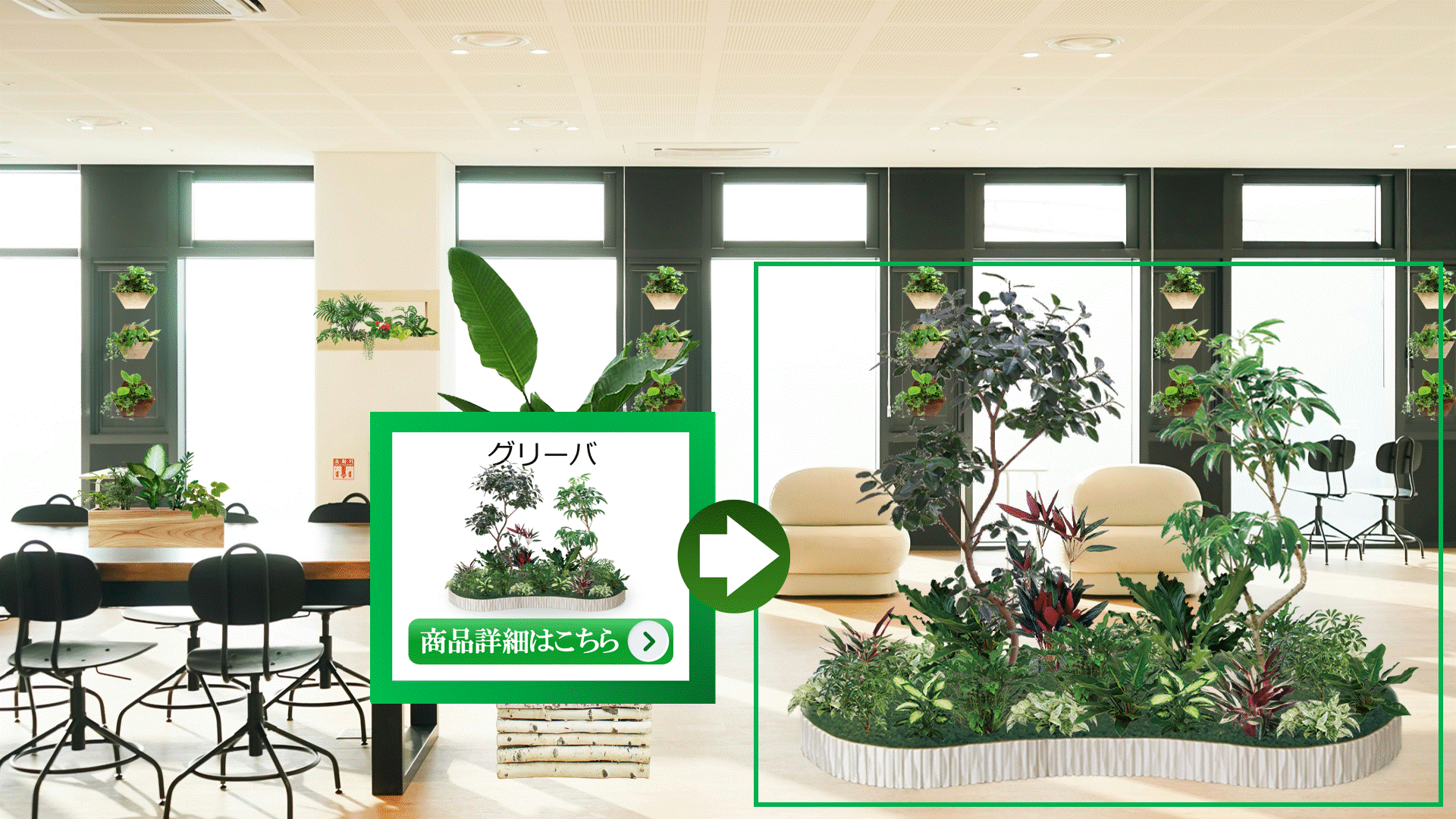 観葉植物導入前と導入後のシミュレーションスライド【オフィス編】です。※人気のオリジナル商品を載せております
