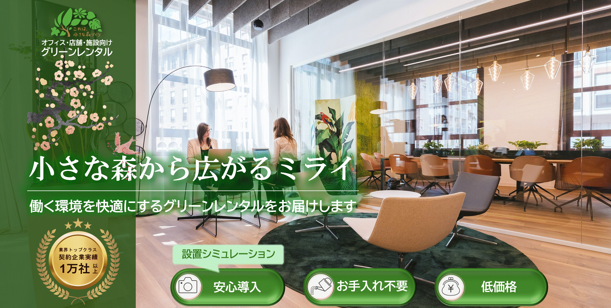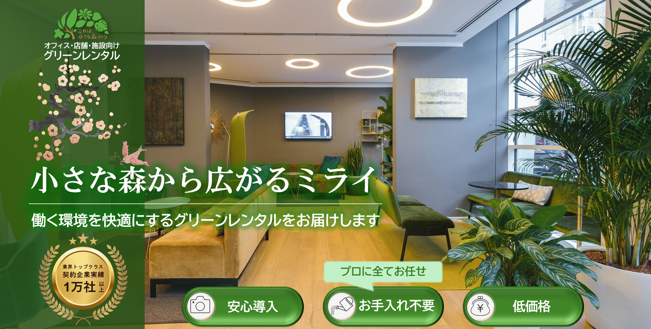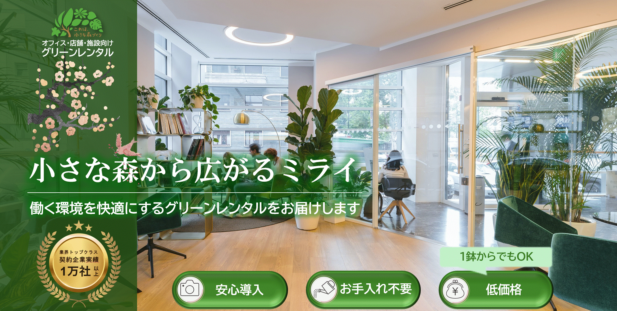 所有植物管理の悩みやレンタルサービスとの違いを下のスライド(3枚)に記載してありますので左にスライドしてご覧ください。