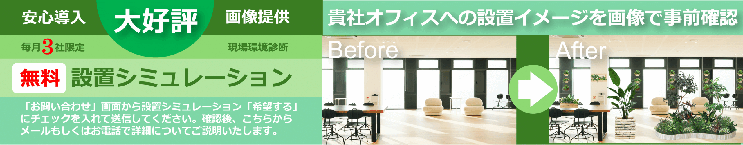 観葉植物導入前と導入後のシミュレーションスライド【オフィス編】です。※人気のオリジナル商品を載せております