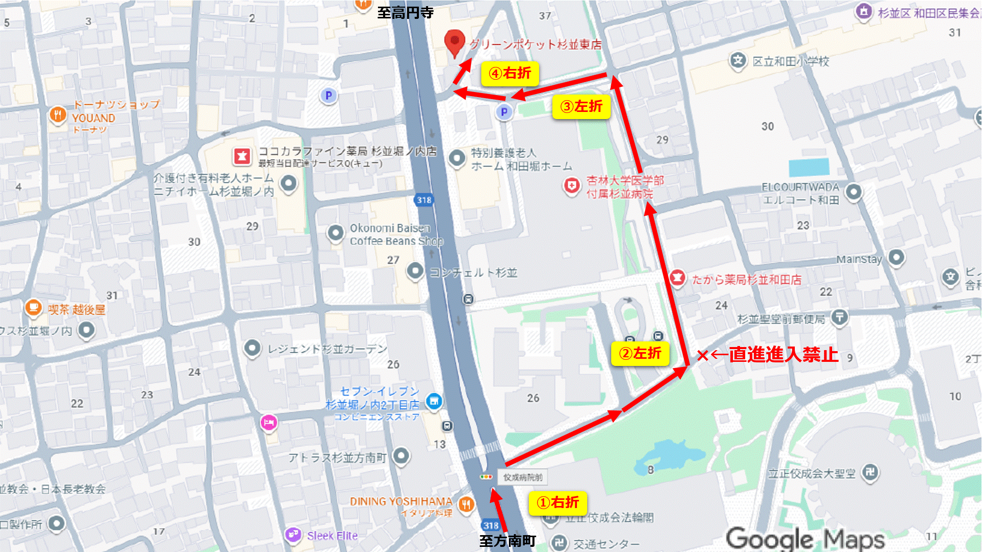 ※方南町方面からの車のアクセス(左にスライドしてご覧ください)