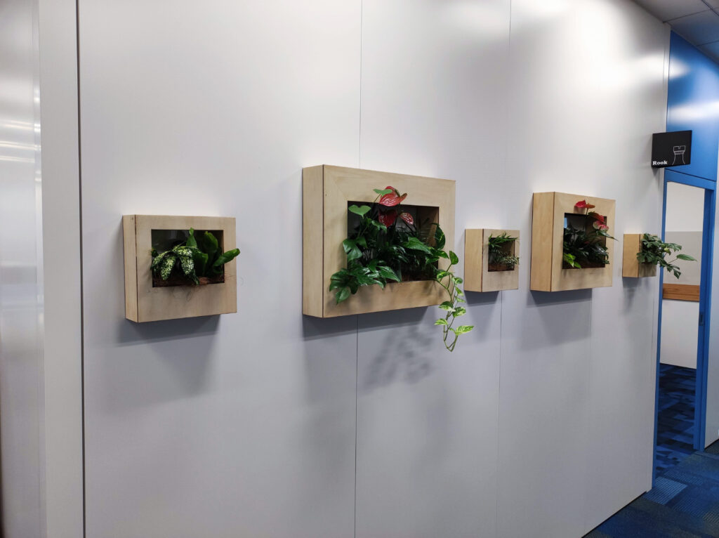 通路の壁に絵画のように植物を飾ることもできます